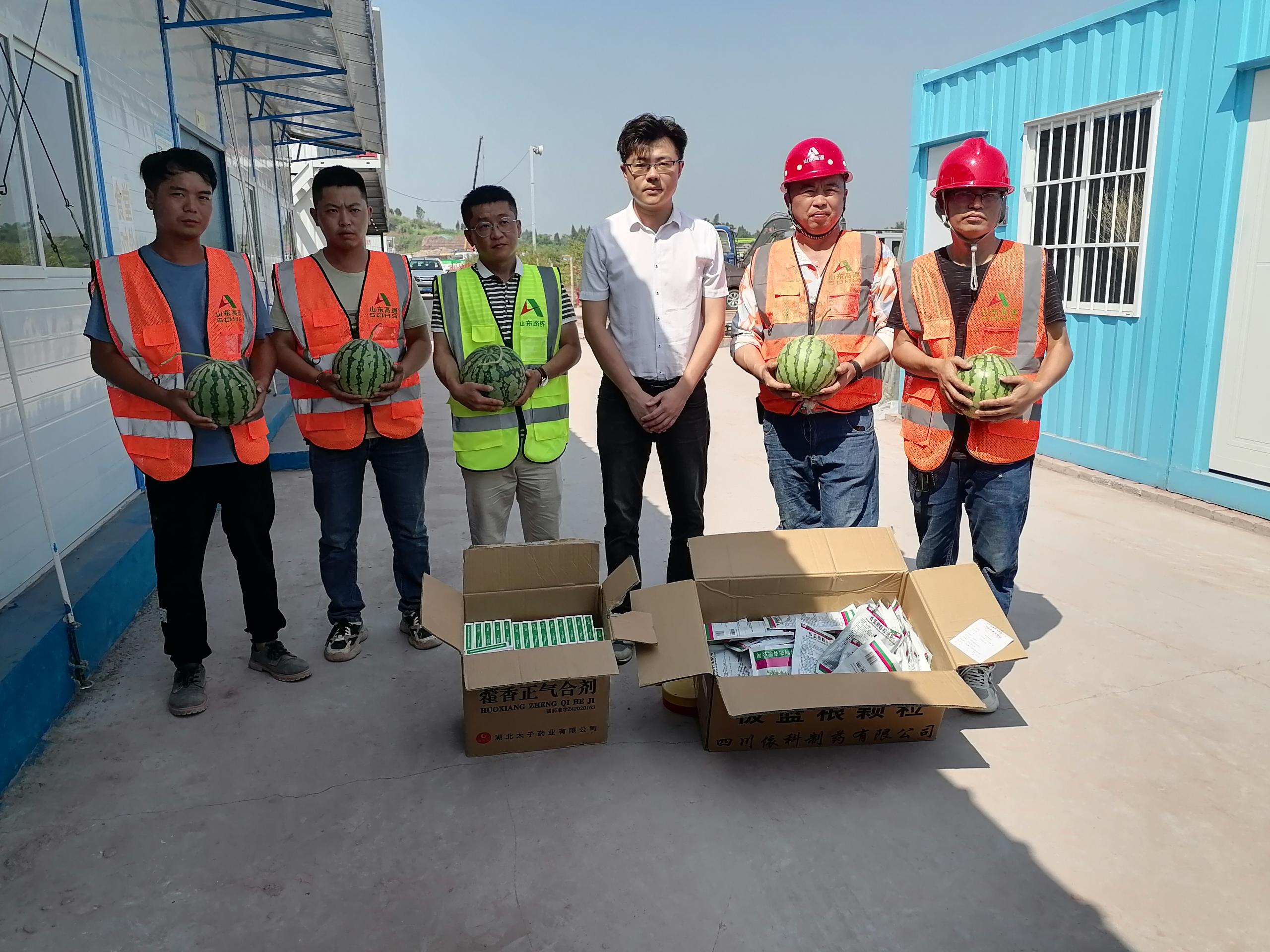 每到一個項目施工現(xiàn)場,周士棠同志都深入一線職工當中,與大家親切交談,親自將一個個西瓜,一盒盒防暑藥品發(fā)放到大家手中,細致詢問大家近期的生活情況和工作情況,實地查看項目進展情況。了解到員工在近40攝氏度的酷熱下依舊堅持高溫作業(yè),加班加點堅守施工一線,爭分奪秒比質(zhì)量搶進度后,周士棠同志對大家在高溫天氣仍堅守崗位、辛苦勞動付出的精神表示高度肯定與贊揚。