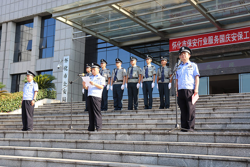 參加啟動儀式的領導有懷化市公安局治安支隊支隊長袁剛、內保大隊大隊長謝洪民,鶴城區(qū)公安分局內保大隊副大隊長楊春先。市內城區(qū)8家保安公司主要負責人和保安隊員300余人參加了啟動儀式,懷化市電視臺、廣播電臺、網站、報社等媒體對活動進行了報道。