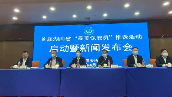 2022年4月19日上午,由湖南省保安協(xié)會主辦、湖南日報社協(xié)辦的首屆湖南省“最美保安員”推選活動啟動儀式暨新聞發(fā)布會在長沙召開,省保安協(xié)會會長譚和平、省保安協(xié)會顧問兼專家委員會主任委員趙劍、湖南省物業(yè)管理行業(yè)協(xié)會書記封浩建、省公安廳治安總隊(duì)內(nèi)保支隊(duì)長兼省保安協(xié)會秘書長張小兵、省保安協(xié)會專職副秘書長常自力、十余家新聞媒體出席發(fā)布會。發(fā)布會由省公安廳治安總隊(duì)副總隊(duì)長、二級警務(wù)專員兼省保安協(xié)會監(jiān)事長劉繪錦主持。