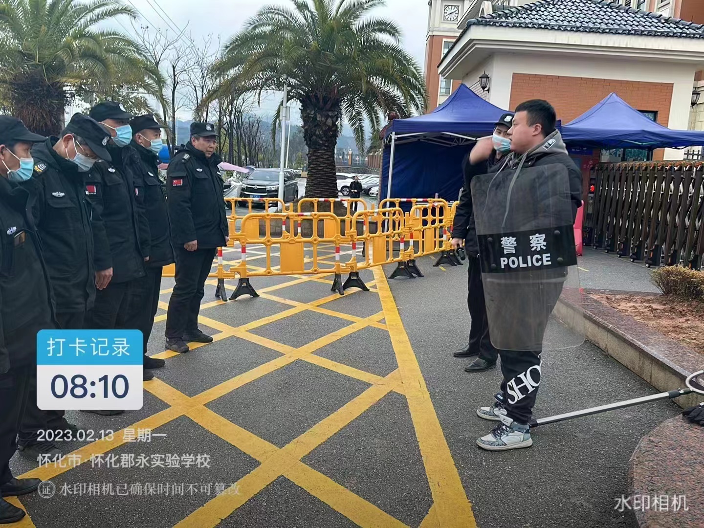 為切實(shí)強(qiáng)化校園安保工作,提升校園安保隊(duì)伍應(yīng)對(duì)突發(fā)性事件的反應(yīng)和處理能力,保障全校師生人身和財(cái)產(chǎn)的安全,2023213日上午,公司領(lǐng)導(dǎo)組織郡永實(shí)驗(yàn)學(xué)校全體保安進(jìn)行反恐防爆演練。