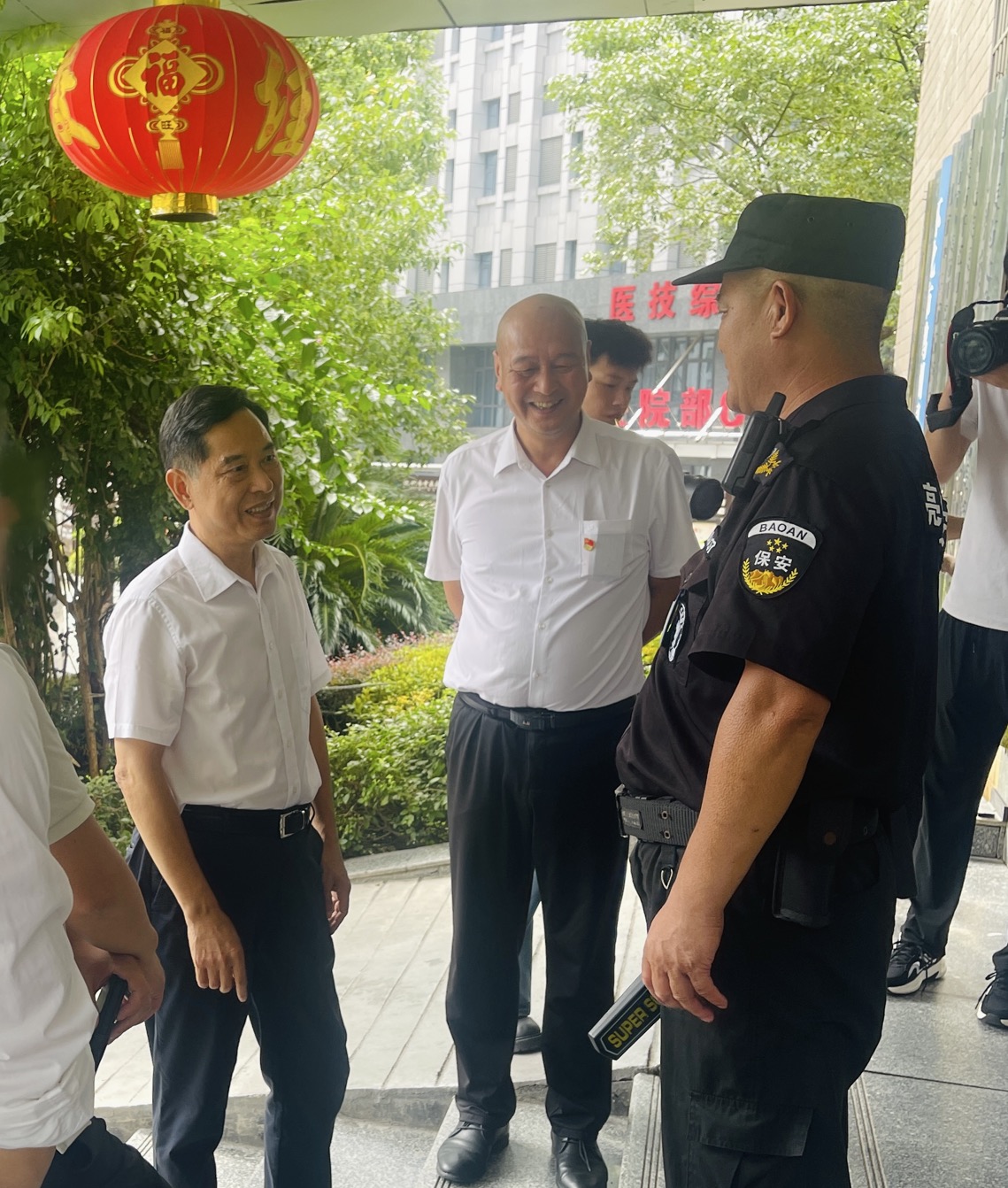 下午,溫暖的氛圍持續(xù)蔓延。譚和平會長等領導不辭辛勞,專程來到我公司派駐懷化市中醫(yī)醫(yī)院的保安崗位,對所有堅守在此的保安人員進行了親切慰問。在懷化市中醫(yī)醫(yī)院,領導們仔細察看了保安人員的工作環(huán)境,了解他們的值班安排、安全保障措施等情況。當看到保安人員們精神抖擻、認真負責地堅守在各自崗位上,為醫(yī)院的正常秩序和患者的安全保駕護航時,領導們給予了高度贊揚。他們與保安人員親切交談,叮囑大家在做好本職工作的同時,一定要注意自身安全,勞逸結(jié)合。一句句暖心的話語,一個個關切的眼神,讓堅守在一線的保安人員們深受感動,大家紛紛表示,絕不辜負領導的期望,將以更高的責任心和使命感做好醫(yī)院的安保工作,為醫(yī)患營造安全、和諧的環(huán)境。